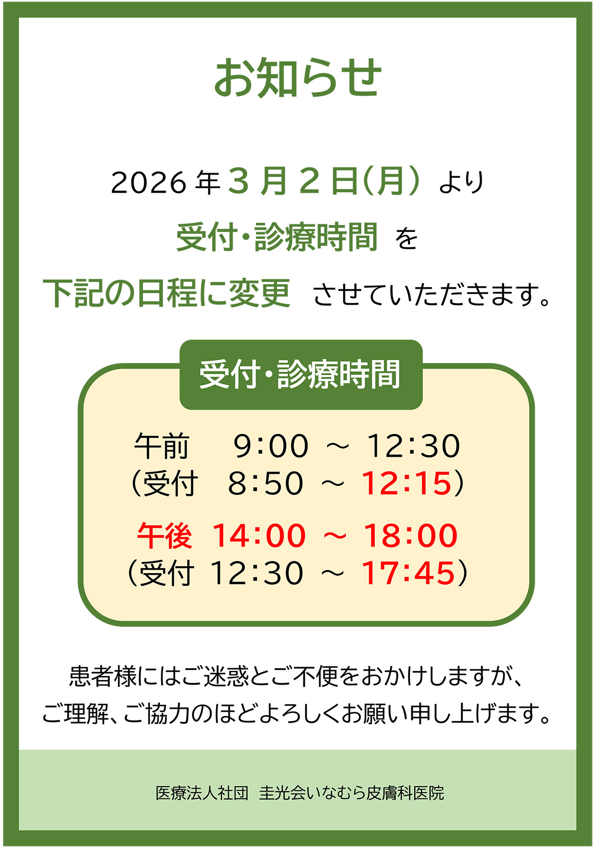 患者様の症状が良くなることによって、私達いなむら皮膚科職員一同は、患者様の喜びを自分の喜びとし、日々邁進している所存でございます。